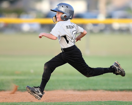 Using breakaway bases for sliding practice can help keep kids safe on the base paths. Coaches should not encourage or allow head-first sliding in younger players. It is better for shins and feet to use running shoes in place of cleats for outfield conditioning and running drills.