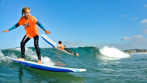 Endless Sun Surf School takes place under the Newport Beach Pier, outside and with plenty of space to distance.