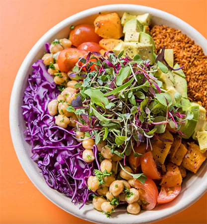 It’s nothing but good vibes at Vibe Organic Kitchen & Juice, where you can always grab a healthy treat. Avo toast, smoothie bowls, tacos and fresh-pressed, organic juice are just some of the items you can vibe with. The Fiesta Bowl is a signature dish and a local favorite made with jackfruit “carnitas,” chipotle black beans, pico de gallo, guacamole, crispy pumpkin seeds, cashew-lime crema and pickled red onion.