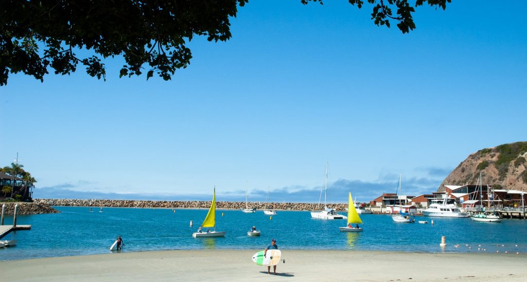 Better known as Baby Beach, Dana Point is perfect for little swimmers or first-time bodyboarders, kayakers, or paddleboarders because of its gentle waters. Bring the whole family and set up at one of the public BBQs or grassy areas for a picnic. Then take a short walk toward the end of the harbor to enjoy the view on the pier. Plus kids can get further marine education if you stop by the neighboring Ocean Institute.