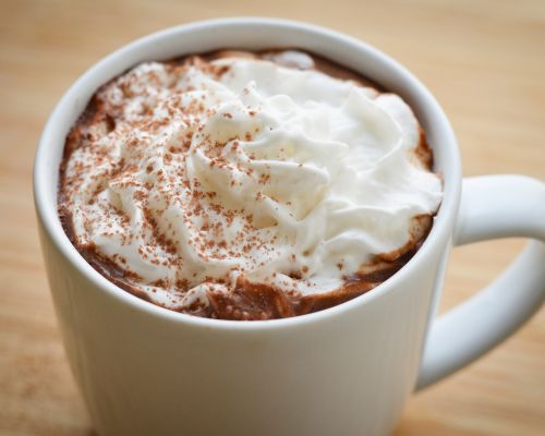 - Divide between two mugs, top with whipped cream, and enjoy!