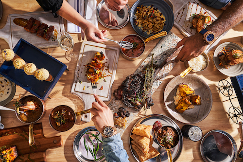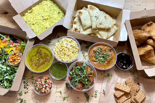 Choose between family-style entrees or burrito pack plus daal lentils and turmeric rice. Meals feed four to eight ($55-$101). To order curbside, visit curryupnow.com or download the Curry Up Now app, DoorDash, Grubhub or Postmates for delivery.