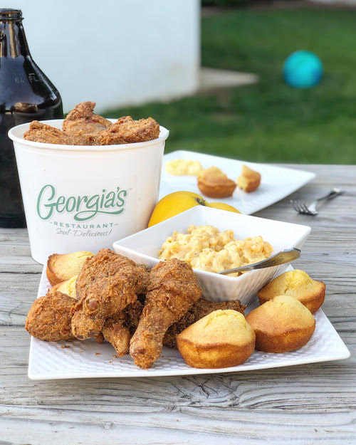 Family meals, like their eight-piece bucket of fried chicken, two sides and cornbread ($20), are available for curbside pickup at us.orderspoon.com/georgia-s-restaurant. Delivery is available via Grubhub or DoorDash.