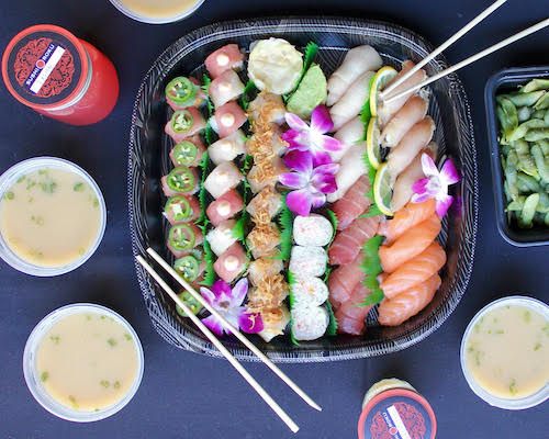 The Family Pack ($98) includes black edamame, miso soup, four types of sushi and four rolls. Order curbside pickup by calling 949-706-3622. Orders of $50 or more receive a $20 bonus card to use when dine-in resumes. Free delivery via Postmates, DoorDash and Uber Eats.