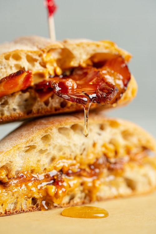 The Butchery is a premier butcher shop and gourmet grocer. And their deli serves one mean PB&J. The classic gets elevated with pepper jam and a stack of smokey bacon, sandwiched between peanut butter and honey on fresh ciabatta bread. The Butchery is offering pickup and curbside service at all locations and you can stock up on their meat and grocery staples too. Pick up some of their Salmon Creek Farms thick-sliced bacon for this recipe.