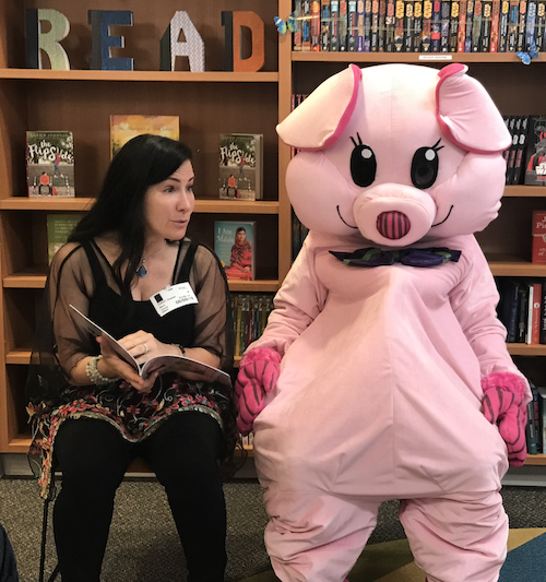 Center Photo: Mara James reading “The Power of Piggie Bear” to children at CHOC