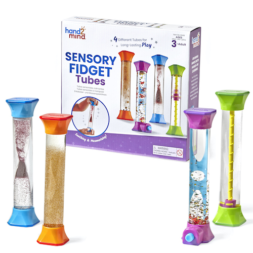Trouble focusing or sitting still for long periods of time is common among children on the autism spectrum. Help your child manage their emotions and focus their attention on this set of four colorful Sensory Fidget Tubes. These securely sealed, easy-to-grip bottles feature a variety of shapes, interactive elements, special effects and colors to provide a quiet, engaging option for kids who need help settling down.